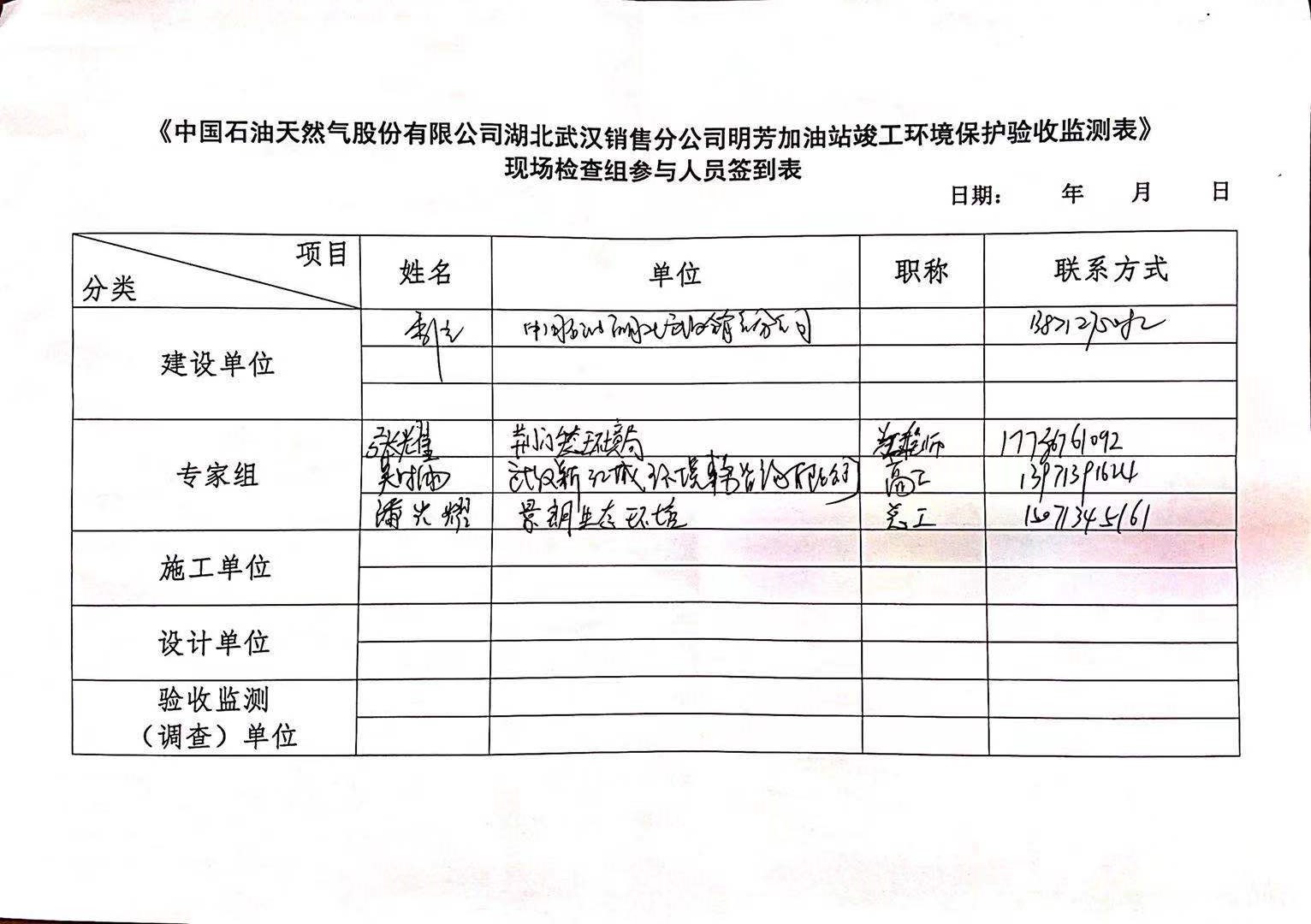 中國石油天然氣股份有限公司湖北武漢銷售分公司明芳加油站竣工環(huán)境保護(hù)驗收
