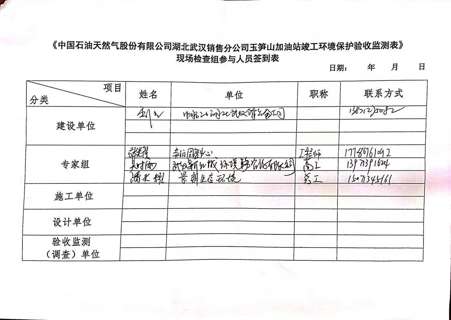 中國石油天然氣股份有限公司湖北武漢銷售分公司玉筍山加油站竣工環(huán)境保護(hù)驗收
