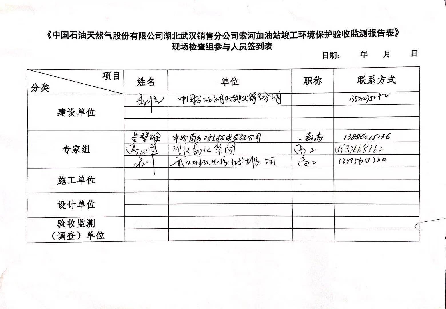 中國(guó)石油天然氣股份有限公司湖北武漢銷售分公司索河加油站竣工環(huán)境保護(hù)驗(yàn)收